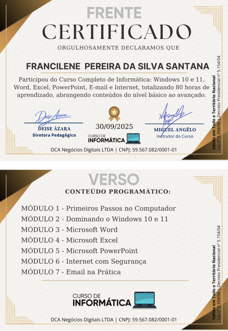 Você vai receber um CERTIFICADO VÁLIDO em todo território nacional, reconhecido por LEI.