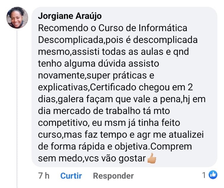O Curso Informática Descomplicada conta com uma garantia de 100% de satisfação.