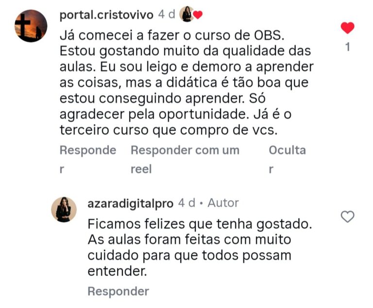 Especialista em informática e produção de vídeos, com foco em gravação, transmissão e configuração profissional no OBS Studio. Une conhecimento técnico e comunicação clara para ensinar, de forma prática e objetiva, como gravar vídeos com qualidade, mesmo para quem está começando.